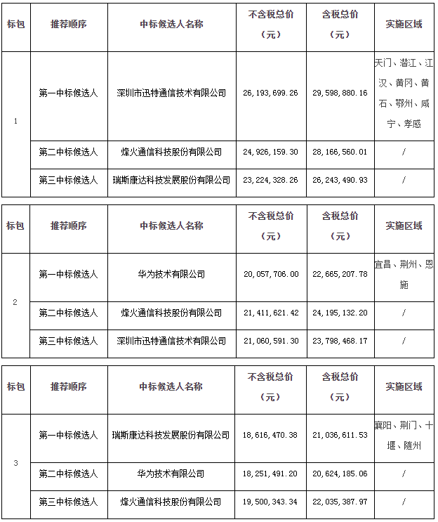 ICCSZ訊 根據(jù)中國(guó)移動(dòng)官方公告,湖北移動(dòng)發(fā)布2019-2020年無源光纖倍增器第二次集采的中標(biāo)候選人結(jié)果,華為、烽火、瑞斯康達(dá)和深圳迅特4家中標(biāo)。