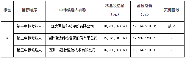 4個(gè)標(biāo)包的中標(biāo)候選人的投標(biāo)報(bào)價(jià)及中標(biāo)情況見下表: