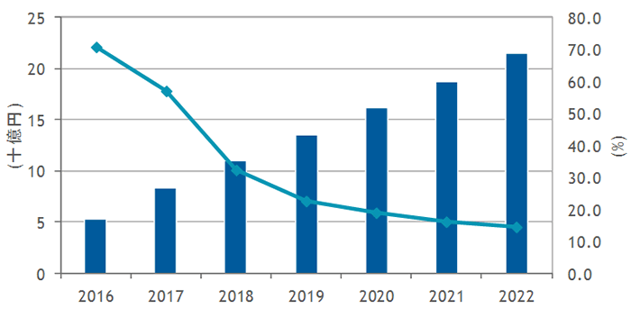 預(yù)計(jì)2017-2022年日本公共云連接廣域網(wǎng)市場將保持20.8%的復(fù)合年均增長率,屆時將達(dá)到215億日元。