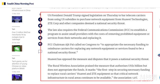 ICCSZ訊 華為和中興作為通信公司,在美國市場是有一定的占有率的,特別是在美國農(nóng)村和偏遠地區(qū),華為和中興是有很大的市場。原因就是這些地方確實比較難以維護并且利潤不高,但是中興和華為依舊在做。但是現(xiàn)在FCC是不給補貼的,導(dǎo)致了華為和中興無法在持續(xù)下去。但是除了這個之外,美國再次簽署法案,禁止使用華為和中興的設(shè)備。