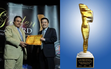 長飛公司總裁莊丹從頒獎嘉賓手中捧回“質量及商業(yè)信譽金獎”證書