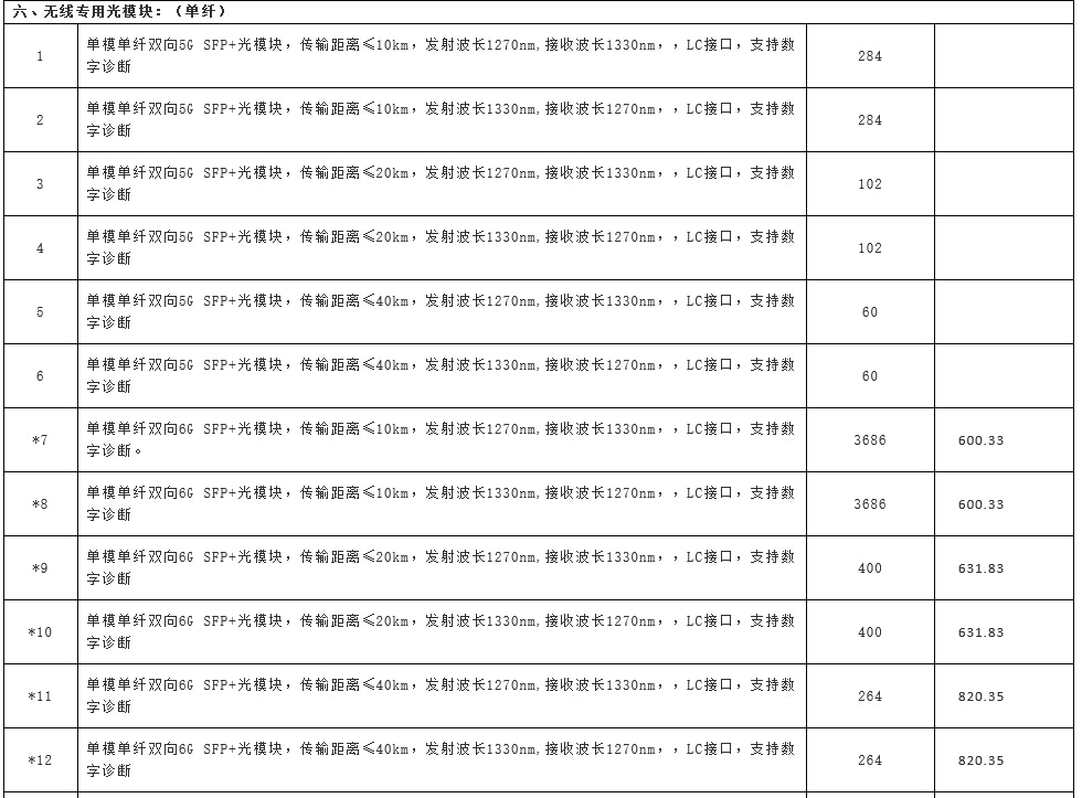 ICCSZ訊(編輯:Debi)5月6日,中國(guó)電信陽(yáng)光采購(gòu)網(wǎng)公布江西電信啟動(dòng)2016年光模塊集采重新招標(biāo)項(xiàng)目,包含數(shù)據(jù)專業(yè)GE光模塊(雙纖雙向)、數(shù)據(jù)專業(yè)10GE XFP光模塊(雙纖雙向)、數(shù)據(jù)專業(yè)10GE SFP+光模塊(雙纖雙向)、數(shù)據(jù)專業(yè)100GE CFP2光模塊(雙纖雙向)、無(wú)線專用光模塊(雙纖)、無(wú)線專用光模塊(單纖)等六種規(guī)格的光模塊,共37364個(gè)。詳情如下: