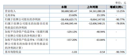 ICC訊 億芯源近日發(fā)布2019年年度報告,2019年公司營業(yè)收入38,688,583.47元,同比增長13.25%,實現(xiàn)歸屬于上市公司股東的凈利潤-18,436,623.71元,同比減少90.77%;實現(xiàn)基本每股收益-1.03元,上年同期為-0.54元。
