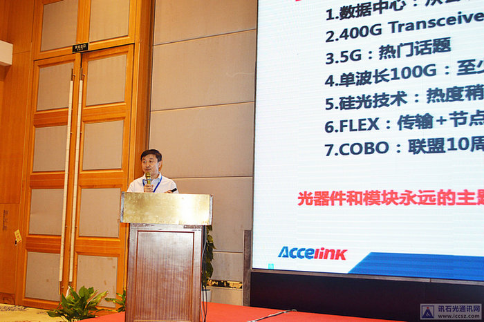 馬總還談到數(shù)據(jù)中心與400G,以及相干光模塊的技術(shù)趨勢(shì),演講的最后總結(jié):1、據(jù)中心是一個(gè)風(fēng)口,400G即將登場(chǎng);2、5G是另外一個(gè)風(fēng)口;3、QSFP-DD,CFP2-DCO是具有代表性的模塊;4、相干技術(shù)(DSP,DSP-FREE);5、ROADM正在擴(kuò)展;6、PAM4技術(shù)的單波100G,MSA成立;7、COBO封裝技術(shù),面向800G以上;8、SDM(10年):多芯光纖,少模光纖及其配套器件。