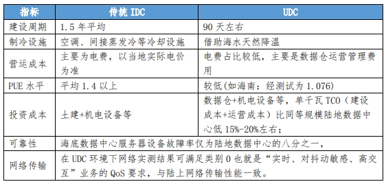圖表 2 傳統(tǒng)數(shù)據(jù)中心與海底數(shù)據(jù)中心的對比