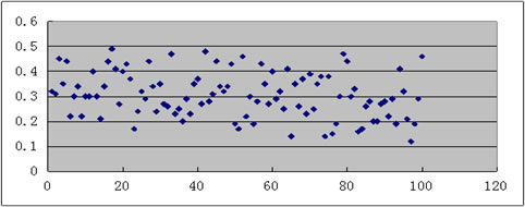 圖3.2、100個現場組裝光纖連接器插入損耗數值(dB)