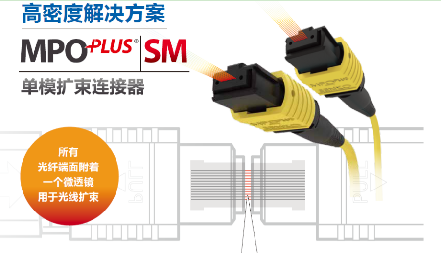 聶經(jīng)理表示,MPOPLUS單模擴(kuò)束連接器的關(guān)鍵技術(shù)在于使用了微透鏡,將單模光纖的纖核從9μm擴(kuò)束到50μm,顯著降低了光纖連接的工作壓力,使其具有對灰塵不敏感的特性,從而適用于背板等防塵維護(hù)較難的惡劣環(huán)境應(yīng)用。此外,這是一款單模應(yīng)用產(chǎn)品。