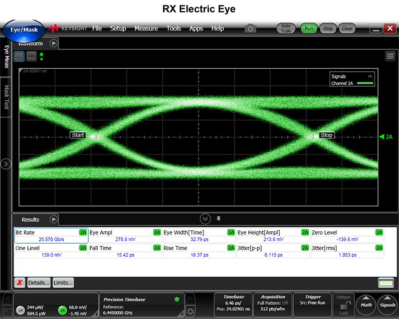 TX光眼圖,RX電眼圖,功耗和誤碼測(cè)試數(shù)據(jù),請(qǐng)?jiān)斠娤铝袌D表: