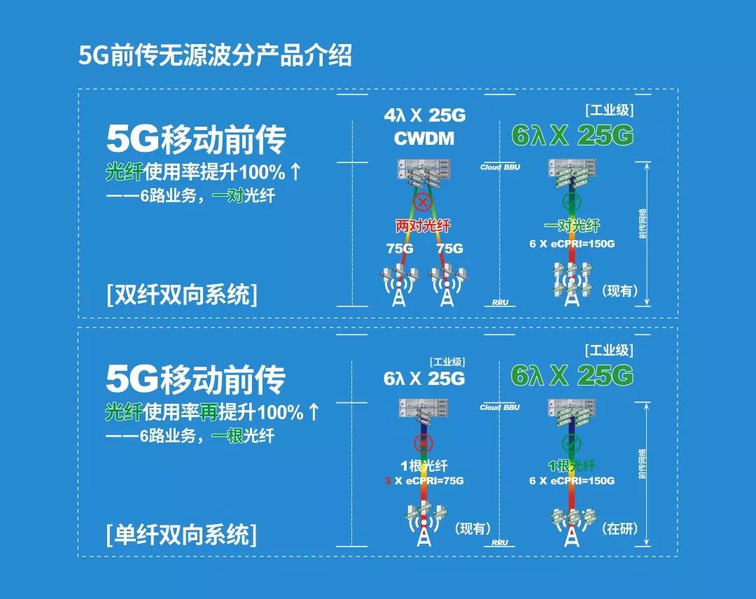 以及完整的無源波分產(chǎn)品解決方案,希望能夠通過我們的產(chǎn)品和解決方案, 使得您的目標(biāo)5G前傳網(wǎng)絡(luò)在光纖資源使用率上,能夠得到100%~200%的提升。