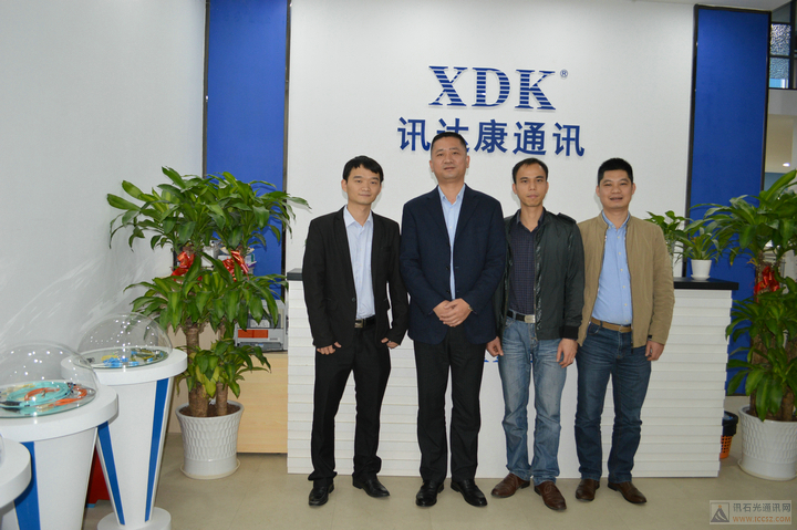 (從右往左:訊達(dá)康市場部經(jīng)理 許向勇,訊石 凌科,訊達(dá)康副總經(jīng)理 謝華章,訊石 曾家梁)