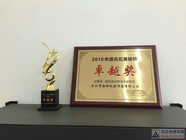 海拓儀器設備表現(xiàn)卓越,是為市場精品,是企業(yè)發(fā)展的好伙伴!2017年1月6日,在由訊石主辦的“訊石2016年度總結會議”上,海拓儀器的超快速冷熱沖擊試驗機憑借優(yōu)秀性能榮獲設備類最高獎項-卓越獎。
