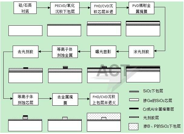 圖1:典型SiO2平面光波導(dǎo)器件工藝流程。