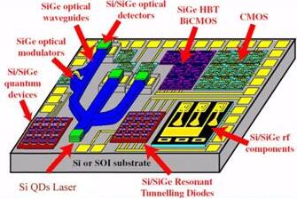 用于光波導(dǎo)器件的材料種類(lèi)非常多,二氧化硅和玻璃、Ⅲ-Ⅴ族化合物半導(dǎo)體(GaAs和InP)、鈮酸鋰和鉭酸鋰、有機(jī)聚合物、硅和鍺半導(dǎo)體,因此器件的種類(lèi)也很多。光波導(dǎo)器件能否像集成電路產(chǎn)業(yè)一樣,只采用硅這一種材料呢?由于作為激光器的介質(zhì)要求是直接帶隙才能激射,而硅是間接帶隙。因此自光纖通信技術(shù)發(fā)展伊始,其器件的發(fā)展始終不能像集成電路的發(fā)展一樣,可實(shí)現(xiàn)大規(guī)模、超大規(guī)模的集成,而只能是幾個(gè)、幾十個(gè)、幾種功能的集成,能做到上百、上千的個(gè)數(shù)或功能的集成異常困難。