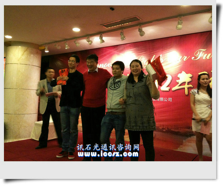 【訊石光通訊咨詢網(wǎng)】1月27日晚上,訊石會員蘇州旭創(chuàng)科技有限公司2012年會在蘇州維景國際酒店拉開帷幕,共有四百四十多名員工及客戶代表參加,現(xiàn)場氣氛熱烈,熱鬧非凡。