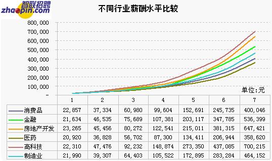 受金融危機影響,金融行業(yè)排名下滑,高科技行業(yè)重返榜首,排名第一,專業(yè)級人才年薪已經(jīng)逼近10萬元,戰(zhàn)略規(guī)劃級的人才能超過70萬元。房地產(chǎn)行業(yè)與高科技行業(yè)