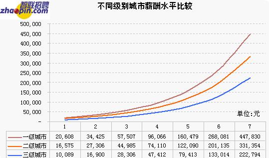薪酬明顯高于二級和三級城市。其中,三級城市僅為一級城市