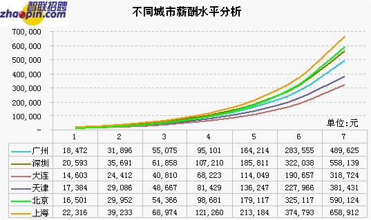 圖表中橫軸的數(shù)字1-7為智聯(lián)招聘職位等級標準