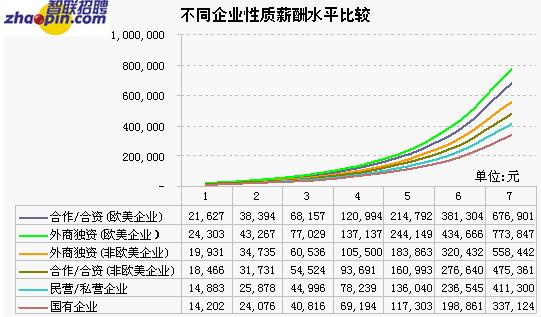 薪酬水平明顯低于歐美企業(yè),分列第三、第四位。民營/私營、國有企業(yè)與外資企業(yè)間的