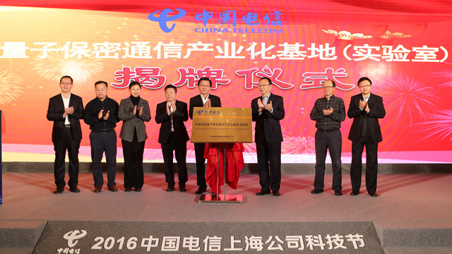 ICCSZ訊 12月12日,中國電信量子保密通信產業(yè)化基地(實驗室)在第四屆上海電信科技節(jié)上正式揭牌,中國電信集團公司副總經(jīng)理真才基、中國電信集團公司技術部總監(jiān)何志強、中國電信上海公司總經(jīng)理馬益民、上海市科學技術委員會副主任干頻、上海市通信管理局副局長謝雨綺等領導出席揭牌儀式。