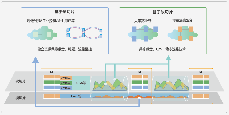軟切片是基于統(tǒng)計(jì)復(fù)用的切片技術(shù),如VPN、SRv6隧道、QoS調(diào)度等。軟切片高效利用帶寬,最大化網(wǎng)絡(luò)資源利用率。