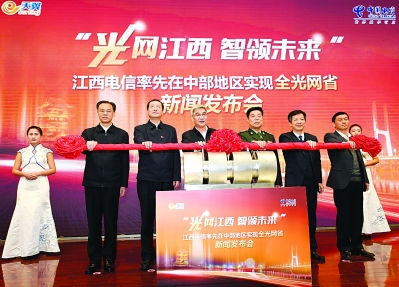 江西省人民政府副省長李貽煌,省軍區(qū)副參謀長蘇明宗,省工信委黨組書記冷新生,省通管局副局長胡素仁,南昌市委常委、副市長華清,中國電信江西公司總經(jīng)理黃曉慶一道推動啟動桿,共同開啟江西步入“全光網(wǎng)省”的新時代。湯扉/攝