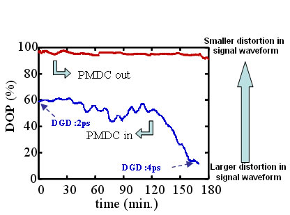 而且,除了3R再生中繼裝置之外,還同時開發(fā)了能自動補償被稱為偏振模色散的光纖專有傳輸路特性變化的偏振模色散補償裝置。在傳輸路光纖核心的橢圓化引起波形失真增加的現象下,偏振模色散受每天的氣溫變化等傳輸環(huán)境的影響而時時刻刻在變化。而且,因為傳輸速度越快,受到的影響越大,對于每秒40千兆位以上的傳輸系統(tǒng),偏振模色散補償不可缺少。沖電氣此次開發(fā)的偏振模色散補償裝置應用了充分發(fā)揮光3R中繼裝置性能的特殊設計。