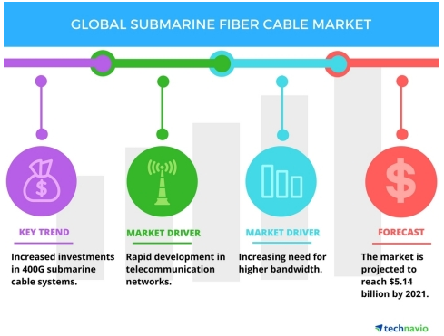 國際市場研究機構(gòu)Technavio日前發(fā)布報告稱,到2021年,全球海底光纜市場規(guī)模將達到51.4億美元,期間年復合增率接近5%。