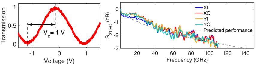 圖2 半波電壓為1 V,電光帶寬達(dá)到110 GHz