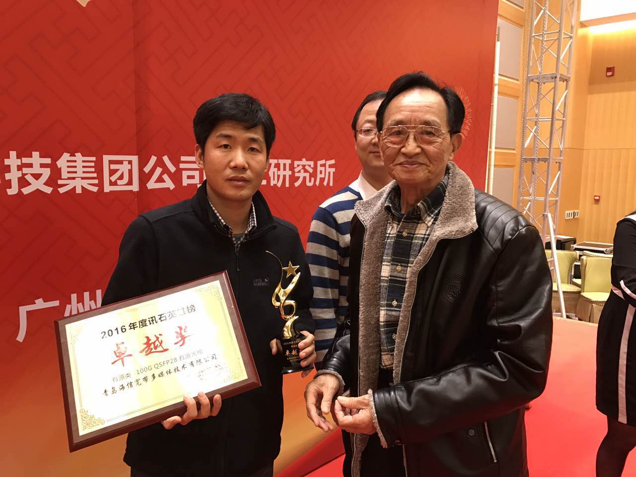 作為少數(shù)從事光通訊芯片企業(yè) 優(yōu)迅獲得卓越獎 石總與優(yōu)迅代表合影