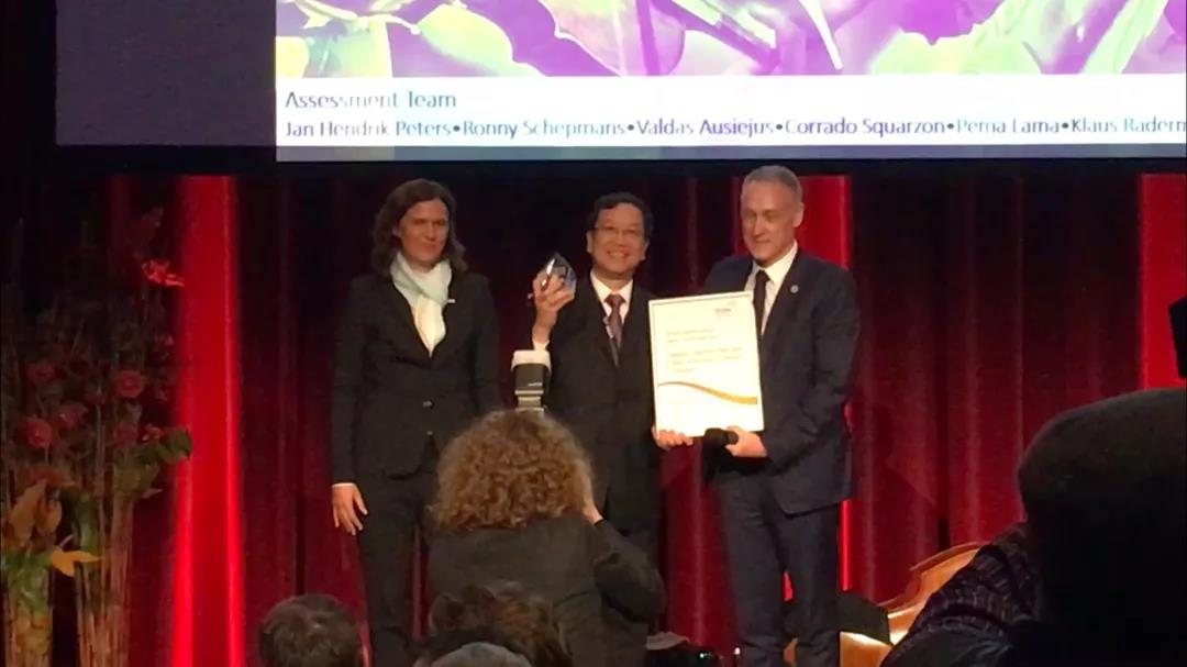 ICCSZ訊 北京時間10月19日凌晨,2018年歐洲質(zhì)量獎頒獎大會在奧地利維也納霍夫堡宮殿隆重舉行,長飛光纖光纜股份有限公司(以下簡稱“長飛公司”,股票代碼:601869.SH、06869.HK)榮獲由歐洲質(zhì)量管理基金會(EFQM) 頒發(fā)的“2018 EFQM全球卓越獎”。今年全球只有8家企業(yè)獲獎,長飛公司是歐洲質(zhì)量獎設(shè)立以來首個獲得該獎項的中國企業(yè)。公司副總裁Jan Bongaerts、運營管理中心總經(jīng)理助理鈕國輝出席頒獎儀式并代表公司上臺領(lǐng)獎。