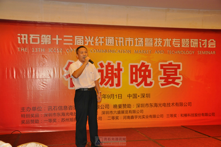ICCSZ訊(編輯:Debi)2014年9月1日,訊石第十三屆光纖通訊市場(chǎng)暨技術(shù)專題研討會(huì)圓滿舉辦,歷時(shí)近十個(gè)小時(shí)的主題演講及論壇討論環(huán)節(jié)給現(xiàn)場(chǎng)嘉賓留下了深刻印象。此外,當(dāng)晚訊石還特意為嘉賓們籌備了氣氛輕松愉悅的晚宴活動(dòng),深圳東海、六盛展覽、蘇州旭創(chuàng)、河南鑫宇、和椿科技還為大家準(zhǔn)備了豐厚的禮品進(jìn)行抽獎(jiǎng),在近兩百位嘉賓們的共同見(jiàn)證下,晚宴現(xiàn)場(chǎng)熱鬧非凡,小編為您再現(xiàn)當(dāng)晚的火熱景象。