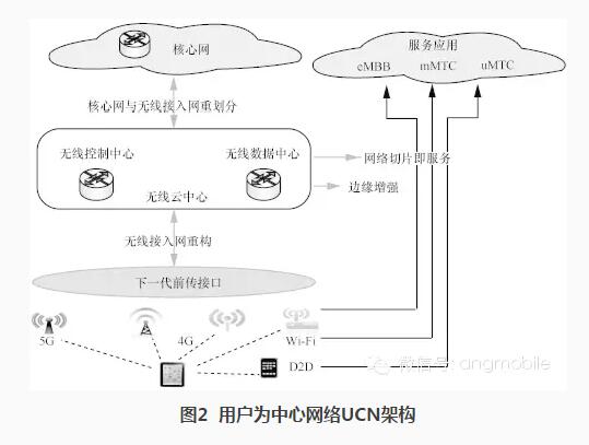 具體地,UCN通過將RAN功能分配到不同的最佳承載的接入點以及通過接人點間的協(xié)作配合,可充分利用不同網(wǎng)絡接人點的差異性,通過節(jié)點間協(xié)作,實現(xiàn)優(yōu)化的網(wǎng)絡效率,這樣,RAN將形成無線云中心+下一代前傳接口+頻拉遠系統(tǒng)架構(gòu)。