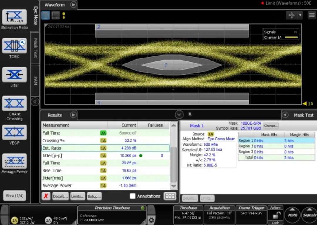 華拓100G SR4國產(chǎn)化方案,根據(jù)數(shù)據(jù)市場趨勢,為數(shù)據(jù)中心使用場景而設(shè)計,具有低功耗、兼容性好、可靠性高、運行穩(wěn)定等優(yōu)勢。該模塊性能優(yōu)異,通過了GR-468 可靠性測試以及國內(nèi)外主流品牌交換機兼容測試,眼圖余量可達40%以上,功耗低于2w,目前已在國內(nèi)知名數(shù)據(jù)中心大批量交付使用。