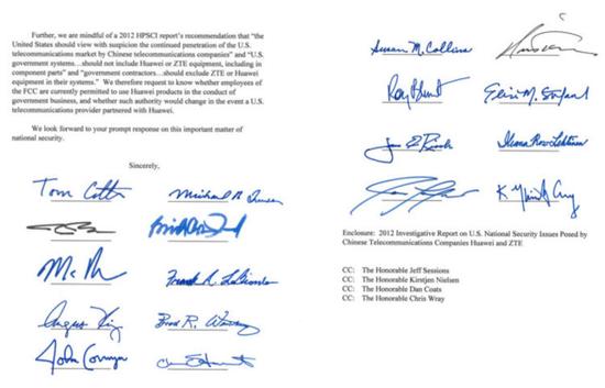 ICCSZ訊 2018年CES第一天,來(lái)自外媒的彭博社稱(chēng)華為手機(jī)未能與AT&T達(dá)成合作協(xié)議。之后就有媒體曝光了“美國(guó)18名國(guó)會(huì)議員聯(lián)名致信聯(lián)邦通信委員會(huì)(FCC)主席艾吉特·帕伊(Ajit Pai)”的郵件,主要內(nèi)容是,要求FCC對(duì)華為與美國(guó)運(yùn)營(yíng)商的合作展開(kāi)調(diào)查。并認(rèn)為是該郵件導(dǎo)致了雙方合作流產(chǎn)。