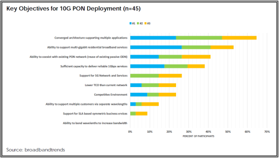 ICCSZ訊(編譯:Nina)Broadbandtrends(BBT)最近對領(lǐng)先的寬帶運營商進行了一項調(diào)查,了解他們在網(wǎng)絡(luò)中部署10G PON技術(shù)的計劃。10G PON可以提供更高帶寬和對稱服務(wù),同時滿足新興5G網(wǎng)絡(luò)的帶寬、延遲和致密化要求。