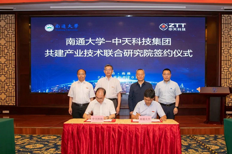 南通大學服務地方工作處處長高江寧、中天科技集團總工程師謝書鴻代表雙方正式簽訂“南通大學—中天科技集團共建產業(yè)技術聯(lián)合研究院協(xié)議”。