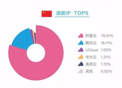 國內(nèi)云廠商活躍IP TOP5分別是阿里云、騰訊云、UCloud、華為云和美團(tuán)云。根據(jù)AWS中國區(qū)的IP活躍數(shù)量,排在第三位。