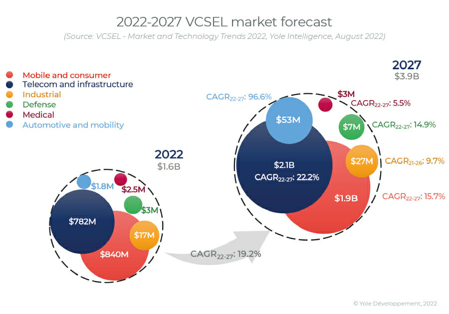 VCSEL市場(chǎng)受消費(fèi)和數(shù)據(jù)通信應(yīng)用驅(qū)動(dòng),預(yù)計(jì)2027年將達(dá)39億美元