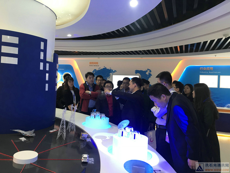 參觀團(tuán)觀看仕佳光子展覽,尹小杰博士做介紹