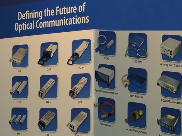 Finisar在會上重點展示100GE CFP2模塊。Finisar新的10公里100GE CFP2模塊基于CFP2 MSA,相比第一代的CFP模塊,其尺寸大幅度縮小,可以用于100GBASE-LR4以及OTU4應用。該產品的功耗小于8瓦,內置4X28Gbps DFB激光器,可以同現(xiàn)有的10公里100GE CFP模塊互通使用。 |