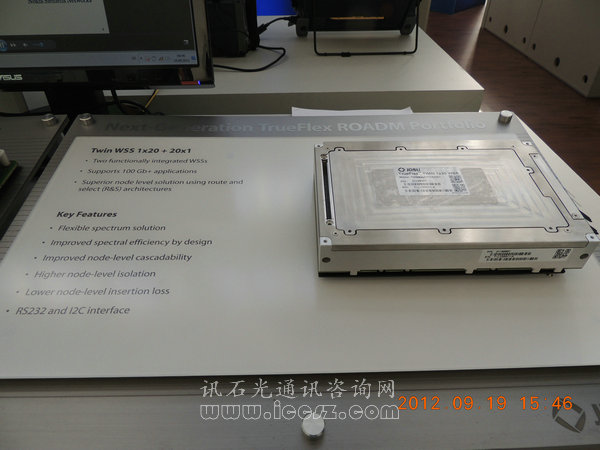 此外,F(xiàn)inisar在ECOC上還推出的另一款新產品:業(yè)界首創(chuàng)的支持Finisar專利的Flexgrid技術的小封裝2X1XN 雙槽 ROADM線路卡。該產品內置了高端口數(shù)的Flexgrid WSS和高速并行掃描的Flexgrid OCM光通道監(jiān)視器,可以用于核心網(wǎng)或者城域網(wǎng)系統(tǒng)。相比其他的解決方案,F(xiàn)inisar的這款新產品進一步改善系統(tǒng)性能,同時降低了系統(tǒng)功耗,同時提高了安裝密度。 |