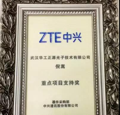 ICCSZ訊 繼月初在ZTE2018全球供應商大會上斬獲“最佳交付支持獎”外,華工正源再傳捷報,獲ZTE重點項目支持獎。