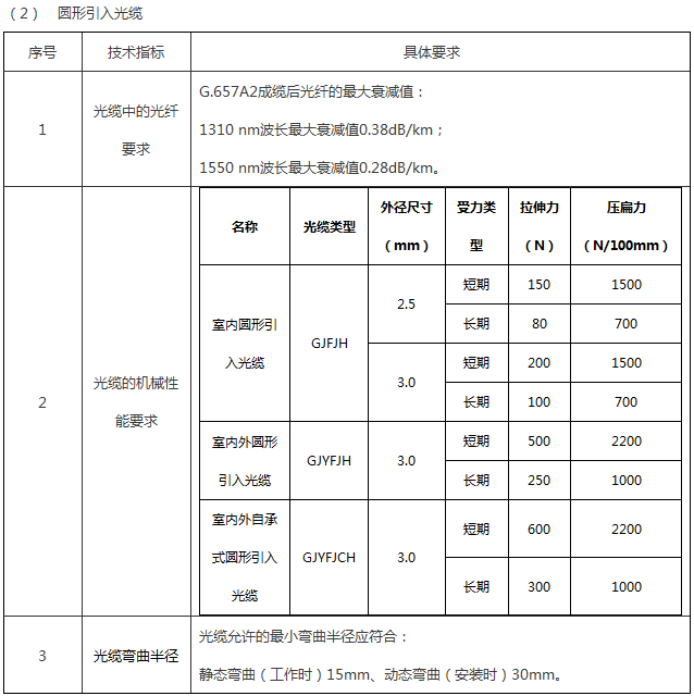 (二)2018年中國電信具體室外光纜和中心管式非金屬扁平光纜的技術(shù)指標(biāo)要求如下: