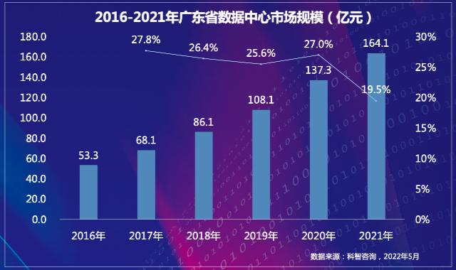 ICC訊 廣東數(shù)字經(jīng)濟(jì)總體規(guī)模連續(xù)多年位居全國(guó)第一,數(shù)字經(jīng)濟(jì)的快速發(fā)展對(duì)于數(shù)據(jù)中心的需求不斷提升,近年來,廣東省數(shù)據(jù)中心市場(chǎng)規(guī)模增長(zhǎng)速度保持在20%以上。
