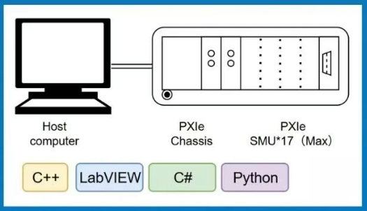 基于 PXle架構(gòu),支持多卡級(jí)聯(lián)與硬件同步觸發(fā),單機(jī)箱最高可擴(kuò)展17張 SMU卡,適用于自動(dòng)化、多通道測(cè)試系統(tǒng)搭建,提供SCPI指令控制及C#、Python、C/C++、LabVIEW等多種編程接口,顯著降低系統(tǒng)集成復(fù)雜度。