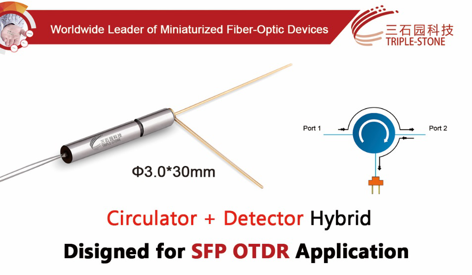 三石園科技緊跟最前沿的需求,針對SFP OTDR模塊應(yīng)用的推出新的小型化集成器件——CIRP。該器件集成傳統(tǒng)光纖環(huán)形器和探測器功能,尺寸僅為為φ3.0*30mm,相對于傳統(tǒng)器件方案極大的節(jié)省了占用空間并進(jìn)一步提高了組件的集成化。