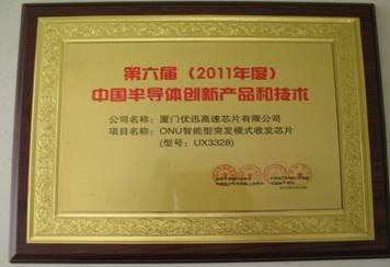 廈門優(yōu)迅連續(xù)三年獲得國家項(xiàng)目立項(xiàng),2008年獲得國家發(fā)改委的風(fēng)險(xiǎn)投資,2010年獲得由國家發(fā)改委頒發(fā) “國家高新技術(shù)產(chǎn)業(yè)化示范工程”金牌,2011年UX3328獲得由中國電子科學(xué)工業(yè)技術(shù)交流中心(國家工信部)頒發(fā)的“中國芯”最具潛質(zhì)獎,2012年UX3328獲選“第六屆中國半導(dǎo)體創(chuàng)新產(chǎn)品”。