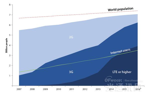 全球先進(jìn)的移動(dòng)寬帶網(wǎng)絡(luò)(LTE)在過去三年迅速增長(zhǎng),覆蓋了全球近40億人口或者全球53%的人口。