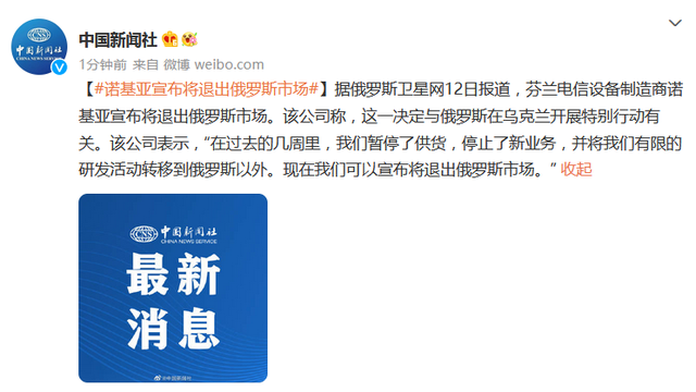 文章標(biāo)題:諾基亞宣布將退出俄羅斯市場(chǎng)