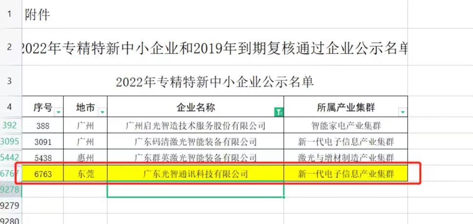 ICC訊 為深入貫徹國家關(guān)于“培育一批‘專精特新’中小企業(yè)”的重要指示精神,落實工業(yè)和信息化部《優(yōu)質(zhì)中小企業(yè)梯度培育管理暫行辦法》,廣東省工業(yè)和信息化廳公布2022年專精特新中小企業(yè)和2019年到期復(fù)核通過企業(yè)名單,廣東光智通訊科技有限公司(以下簡稱“廣東光智”)憑借自身的技術(shù)研發(fā)實力及創(chuàng)新能力榜上有名!